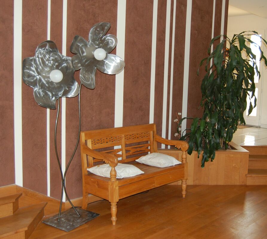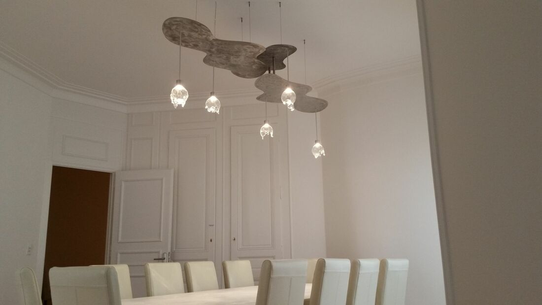 La lumière est importante dans une habitation, elle révèle volume et sensibilité, elle peut mettre en avant un objet pour lui donner tout sa puissance. J’utilise plusieurs types d’ampoules, leds et fibres optique. Je travaille aussi avec un souffleur de verre Suisse qui réalise uniquement des pièces uniques et artisanales.